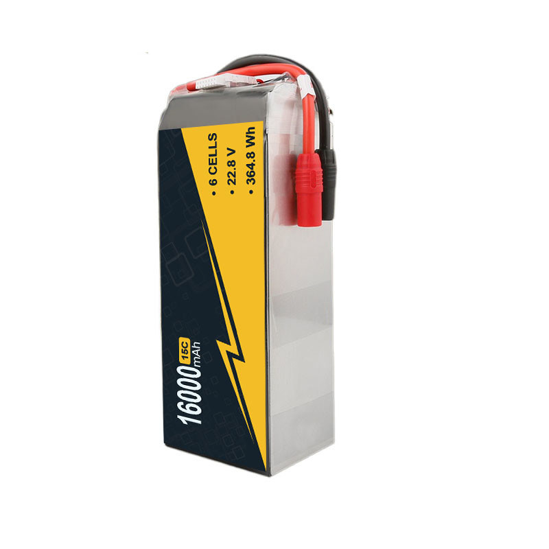 22.8v 16000mAh 6S1P উচ্চ ভোল্টেজ কৃষি ইউএভি ড্রোন এক্সটি90 সহ স্থির উইং লিপো ব্যাটারি